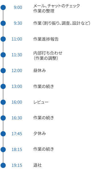 技術が好きなので、今後も技術力を伸ばしながら、マネージメント業務にも挑戦していきたいです。将来的には、メンバー一人ひとりの特性を見極めて、適切な業務を任せられるようなリーダーになりたいと思っています。職場はとても風通しが良く、誰にでも気軽に質問できる雰囲気があります。チャットや対面でのやり取りも活発で、ちょっとした雑談も交えながら仕事が進められる環境です。以前、しばらく運転することから遠ざかっていて運転に不安があった私に課長が同乗してくれたように、些細なことでも頼りにしてもらえる存在になりたいです。そして、苦楽を共にできる仲間と、一緒に成長していけるチームを作っていきたいです。
